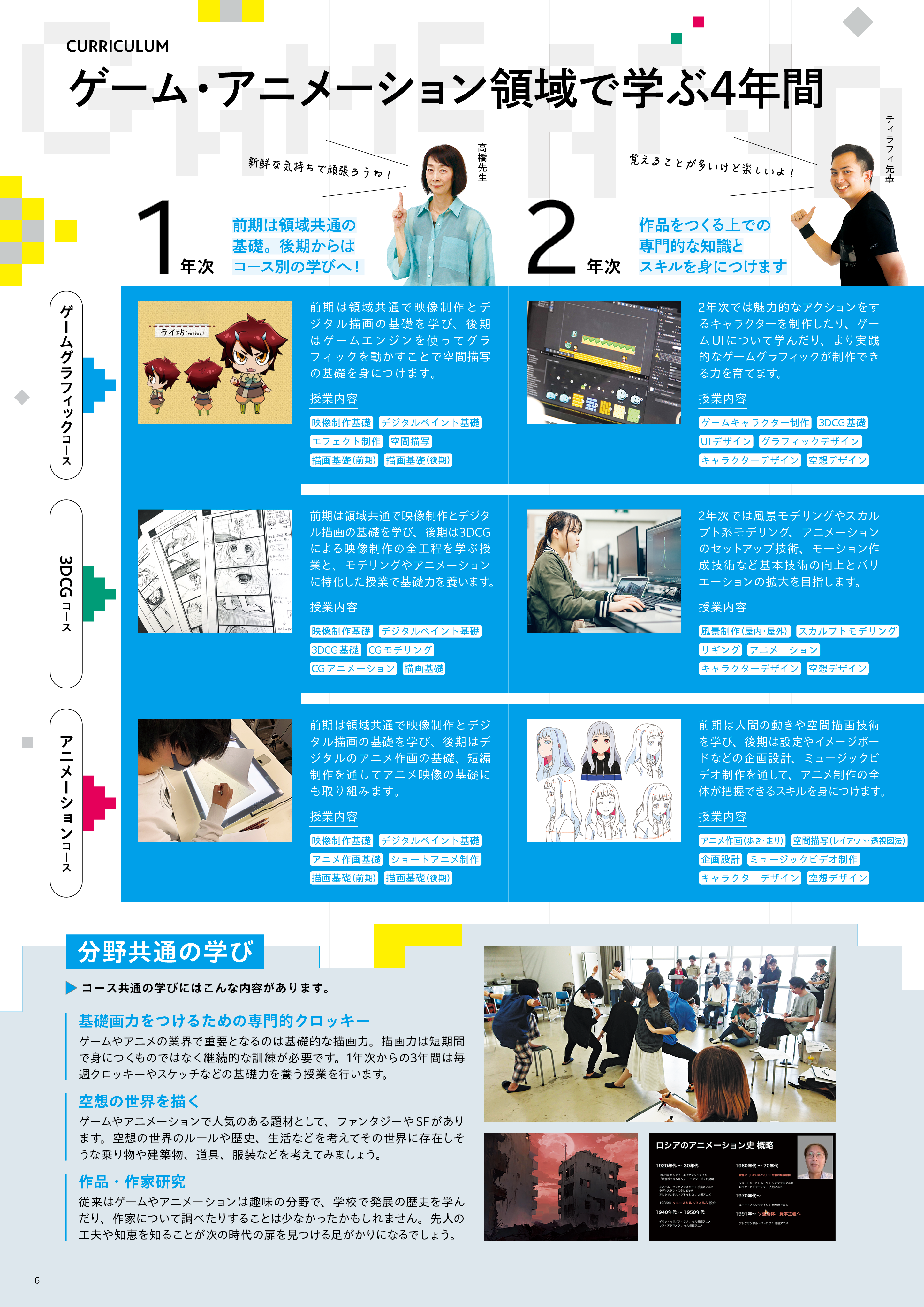 今後、ゲーム制作に使用されるツールは飛躍的に変化することが予想されるため、それらを使いこなすための基本的なITスキルや描写力を育てることに主眼を置いています。