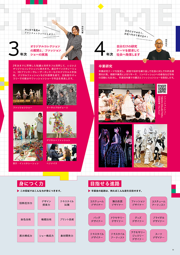並行して進むことで「技術と思いを融合させる力」を養います。さらに展示やショーで自身の作品を