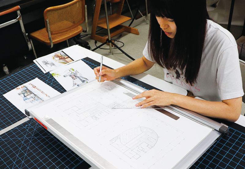 インテリアや建築を横断的に学び、人々が幸せになる住環境を考えます。自在に形をつくれる造形力、空間や形を的確に表す表現力を修得。自然や歴史からソーシャルデザインを学び、周囲と調和する快適な住環境をトータルにデザインする力を身につけます。また一級建築士やインテリアコーディネーターなどの資格取得も視野に入れた専門性の高いカリキュラムを用意しています。